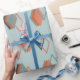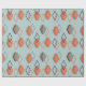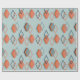 This wrapping paper has a mid-century modern design of solid diamonds overlapping and repeating across the design, as well as diamond outlines repeating across the design in shades of orange, grey-green, dark blue. If you like the design but prefer different colours, message me.