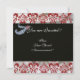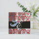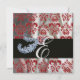 DIAMOND FEATHER RED WHITE ICE SILK DAMASK MONOGRAM INVITATION