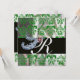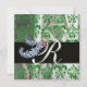 DIAMOND FEATHERS GREEN ICE SILK DAMASK MONOGRAM INVITATION