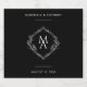 These black sparkling wine and wine labels are perfect for a wedding reception. They can be personalised with a white diamond shaped floral monogram featuring the bride and groom's initials.