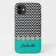 Elegant, romantic, girly, gem diamond graphic flowers set in faux gold border with a black and white chevron zigzag pattern and bright teal blue green border. This design also features a customisable name template for easy personalisation. This design features graphic diamond gems and faux gold borders around the gems. These are not real gems or gold, simply a graphic.