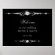 A bar of glittery diamonds decorate this sign that says Welcome to our wedding.