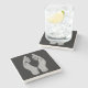 The coasters are gorgeous, a quality feel and heavy weight. They look like a precious archeological find. A rustic stone juxtaposed with a modern floral black and white print. I like the way the print goes slightly imperfect on the cut stone edges giving them a kind-of natural beauty.