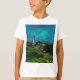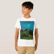 100% cotton so perfect for summer, It is a nicely designed t-shirt, the fabric is soft and the seams finished well, the body of the t shirt has no side seams. I bought a medium size for my two grandsons, aged 9 and 8 it will be slightly big on them but I would rather that than too small