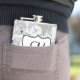 The flask itself is fine. It’s a cheap flask, obviously bought in bulk, however am prepared to overlook that. Given that it is a personalized item, I would have liked to have seen gift boxing instead of the generic packaging. Terrible printing, and/or quality. It’s a cheap, tacky vinyl. It is not cut straight and is also applied in a way that it is overhanging the bottom, causing the glue to catch on items and it will eventually roll and tear, damaging the wrap.