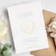 This crisp white wedding invitation features a modern diamond-shaped monogram at its center, with the bride and groom's initials prominently displayed. The monogram is surrounded by classic typography in a gray and shiny gold foil, adding a touch of elegance to the design. Delicate floral details further embellish the invitation, giving it a romantic and timeless feel. The overall design is sophisticated and unique, making it a perfect choice for a stylish and sophisticated wedding.