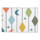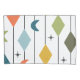 This pillowcase has a mid-century modern design of vertical lines with diamonds and boomerangs, with starbursts scattered in the background.