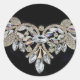 A diamond necklace with a swirl of golden leaves and other embellishments on a black velvet look background.