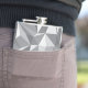 The flask itself is fine. It’s a cheap flask, obviously bought in bulk, however am prepared to overlook that. Given that it is a personalized item, I would have liked to have seen gift boxing instead of the generic packaging. Terrible printing, and/or quality. It’s a cheap, tacky vinyl. It is not cut straight and is also applied in a way that it is overhanging the bottom, causing the glue to catch on items and it will eventually roll and tear, damaging the wrap.