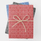 Wrapping paper in a mediaeval inspired diamond pattern - deep red and white, black and white, and cobalt blue and white