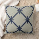 This simplistic design features a repeating pattern of dark blue diagonal bands and shapes on a taupe background, evoking a sense of symmetry and order.