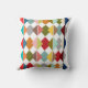 This throw pillow has a Bauhaus design of overlapping diamonds in retro colors.