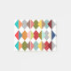 These notes have a Bauhaus design of overlapping diamonds in retro colors.