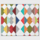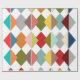 This wrapping paper has a Bauhaus design of overlapping diamonds in retro colors.