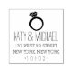 Embellish your save the dates, engagement party invitations or announcements with our diamond engagement ring return address stamp, featuring your name and return address details in a modern mix of handwritten style and block lettering, topped by a diamond ring illustration.