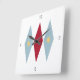 Diamond Starburst Blue Red Mid Century Retro Square Wall Clock