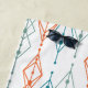 This beach towel has a mid-century modern design of vertical lines with diamonds and ovals in three different designs repeating across the design. If you like the design but prefer different colours, message me.