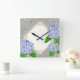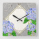 Diamond Swirl Etchings Blue Hydrangea Home Decor Square Wall Clock