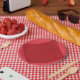 Geometric boldness meets vibrant elegance with this Diamond Texture Red Party Plate — a tomato red base encased in a sharp rhombus of grainy texture. This plate turns disposable dinnerware into an experience, making it the perfect choice for unforgettable events.