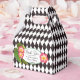 Crisp, minimalistic black and white birthday favour box. Tropical Flowers. Strong diamond pattern is tiled pattern with oval label for birthday party favours. Can also be used for weddings, and other occasions.