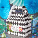 Diamond Tile Black and White with Tropical Flowers Favour Box