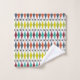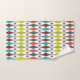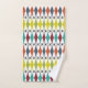 This towel set has a mid-century modern design of stretched diamonds and starbursts on a field of white.