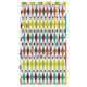 This gift bag has a mid-century modern design of stretched diamonds and starbursts on a field of white.
