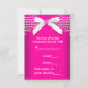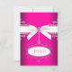 Hot pink diamond white bow hot pink Quinceanera RSVP. This elegant hot pink birthday party invitation is easily customised for your party or event by adding your event details, font style, font size & colour, and wording. Please note - all of the cake toppers, cards and invitation designs you will find on Zazzle are printed graphics with no actual jewels, bows, raised, embossed, or added parts or pieces.