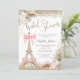 Elegant gold diamonds, flowers, and the Eiffel Tower with bow on a white background. Personalize the text template with your event details. This invitation is available in both printed and instant download digital formats for your convenience.