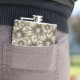 The flask itself is fine. It’s a cheap flask, obviously bought in bulk, however am prepared to overlook that. Given that it is a personalized item, I would have liked to have seen gift boxing instead of the generic packaging. Terrible printing, and/or quality. It’s a cheap, tacky vinyl. It is not cut straight and is also applied in a way that it is overhanging the bottom, causing the glue to catch on items and it will eventually roll and tear, damaging the wrap.