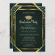 Diamonds Gold Grad Cap Striped Green Graduation Invitation