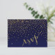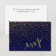 This chic RSVP response card features glittery flecks of golden square confetti that spill onto the body of this navy blue card. Matching products available. Comes in 6 colours: aubergine, navy, turquoise, black, pink and sand. Click the CUSTOMIZE IT button to personalise with your own text. TO SEE THE ENTIRE COLLECTION, VISIT MY WEBSITE: glamprettyweddings.com. For questions or custom requests, email: cheryl@glamprettyweddings.com/contact. "Diamonds in the Sky" design by Cheryl Daniels © 2014.