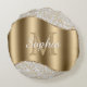 Personalise large gold monogram and name in white script on gold wave with diamonds.