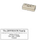 This simple rubber stamp design features a personalised family name and a personalised address. It also features a row of diamond shapes.