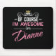 Dianne Of Course I'm Awesome in mixed white and pink sans and decorative cursive font lettering with scroll embellishments and topped a golden stylised crown.  For your favourite person named Dianne.