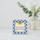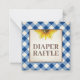 Boy Baby Q baby diaper raffle for baby insert card features a vintage sunflower with a boarder of gingham checkers in shades of blue and weathered paper in a unique miniature size. The reverse is space for diaper raffle poem and name. A country yet charming choice for summer picnic baby showers and barbecues. To see more barbecue shower ideas visit www.zazzle.com/vginvites