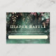 A whimsical watercolor illustration of lush foliage in emerald green and mauve and purple, sparkling with fairy lights and magic dust, with a canopy at the top, decorates this spring summer fall winter neutral baby shower invitation companion, the "Diaper Raffle" insert card, with an enchanted forest theme. An elegant, modern design for a fairytale themed baby shower. Perfect for moms and parents who love the fairytale forest setting, the fairy forest or fairy garden theme and emerald green, mauve and gold and who want a gender neutral celebration.