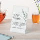 It is sturdy than I expected. Was worried about the material being flimsy but it is not. It is printed on some sort of plastic material. It should serve well at our wedding as long as wind isn’t too bad. Otherwise we will put some paper weights behind it and should be fine.