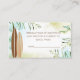 Baby on Board theme diaper raffle ticket with surfboards and tropical foliage.