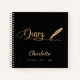 A chic black background. With the text: Diary and decorated with a feather pen. Personalise and add a name and text (or delete)