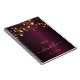 A dark burgundy faux metallic looking background, decorated with faux gold dripping stars. Template for a year. Personalise and add a name and a title. The name is written with a golden modern hand lettered style script with swashes. Can be used as a diary, for journalling, taking notes, to-do lists.