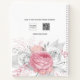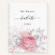 A chic white background with pink florals and silver foliage. Personalise and add your name, title and year. The name is written with a modern hand lettered style script with swashes.