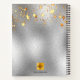 A faux silver metallic looking background with dripping faux golden stars. Decorated with a faux gold geometric frame and burgundy, pink and rose gold coloured flowers, florals. Personalise and add your monogram letters, initials and a title. Black coloured letters. Can be used as a diary, taking notes, to-do lists.