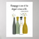 Charles Dickens, who should know, wrote these wise words: "Champagne is one of the elegant extras in life." This historic quote from British literature is set in retro midcentury typography and paired with a row of appetising bubbly champagne bottles in chic shades of sage, charcoal and, well, champagne. Fun for a bar cart or any bar area, as well as at any celebration where champagne corks pop!
