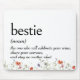 A dictionary's definition of "BESTIE" is presented in bold black text on a white background with wildflower border.