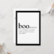 A chic and elegant Halloween party invitation featuring a simple monochrome colour scheme. On the front, there is a dictionary definition of the word "boo" which uses contrasting fonts in black on a white background with a simple black border around the outside. On the other side, there's plenty of room for you to fill in the details about your event. This would be perfect for a chic Halloween party or for anybody having a more sophisticated Halloween event for adults.