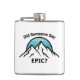 The flask itself is fine. It’s a cheap flask, obviously bought in bulk, however am prepared to overlook that. Given that it is a personalized item, I would have liked to have seen gift boxing instead of the generic packaging. Terrible printing, and/or quality. It’s a cheap, tacky vinyl. It is not cut straight and is also applied in a way that it is overhanging the bottom, causing the glue to catch on items and it will eventually roll and tear, damaging the wrap.