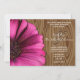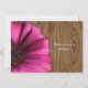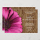 Die Cut Fuchsia Gerber Daisy Wood Grain Wedding Invitation