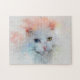 Eine weiße Angora Katze mit zwei verschiedenen Augenfarben in Aquarell