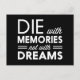Live out your dreams before you die with this Die with Memories not with Dreams design.
